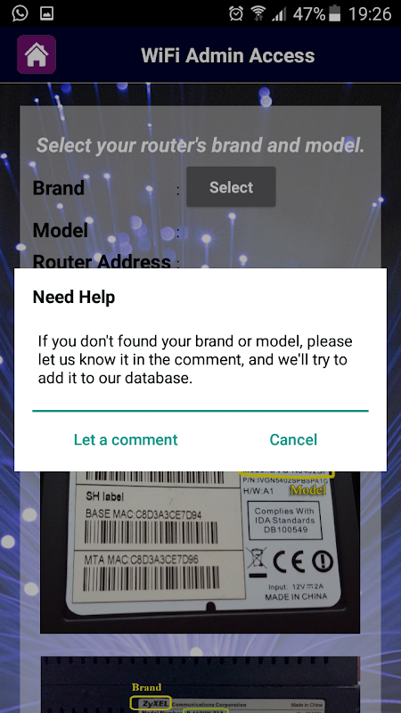 Else you can enter your router's brand and model and search in our database to find the address of your router.