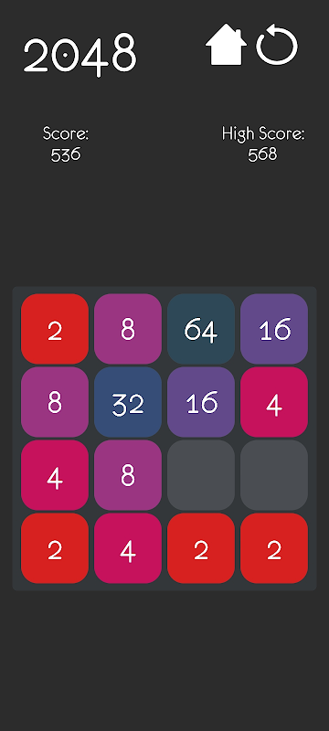 Swipe up, down, left or right to move the tiles in that direction. When two tiles with the same number collide they merge in one with double the number. When you reach 2048 you win! 2 … 4 … 8 … 512 … 1024 … 2048.