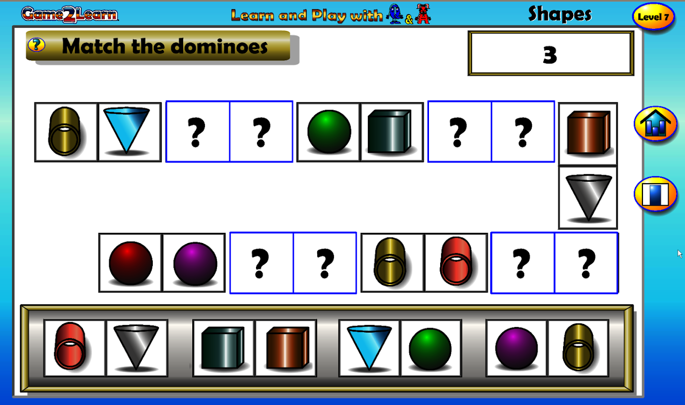 3. A bonus game either 'just for fun' or designed to reinforce the ability identify 2 and 3 dimensional shapes.