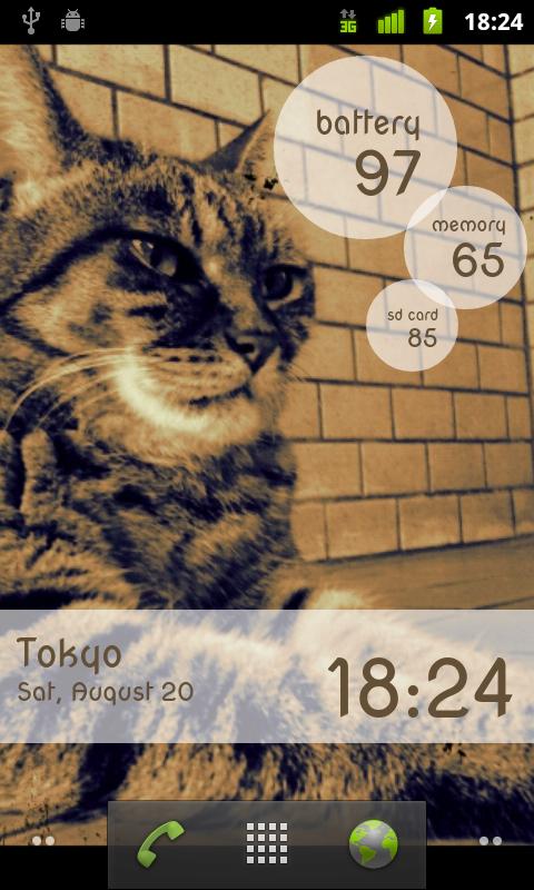 3 Tiles is a simple cool AppWidget for Battery, internal Memory and SD card memory.