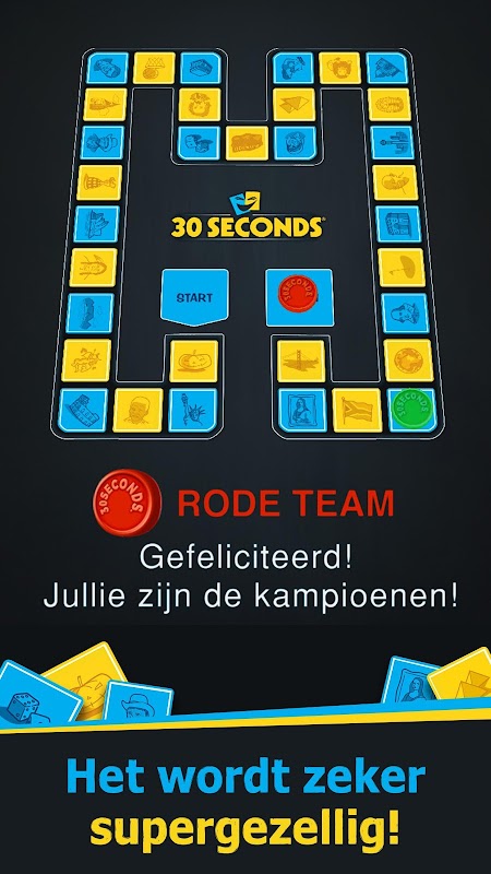 目標是讓您的團隊根據您的描述在 30 秒內猜出盡可能多的名字。每支至少有兩名球員的球隊必須讓球隊的其他隊員猜出屏幕上卡片上顯示的五個名字。在遊戲板上最先到達終點線的隊伍獲勝。