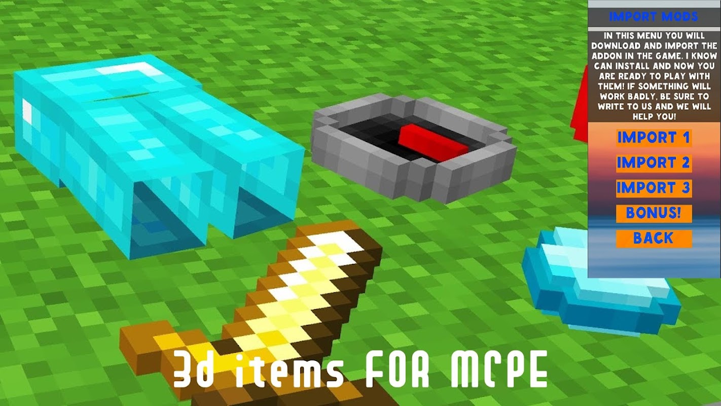 ❗3d Items Mod for Minecraft PE❗😋 將添加一個很棒的插件。你將有一個很好的機會讓你的 MCPE 遊戲永遠多樣化,擁有令人難以置信的 3d 物品怪物地圖紋理和功能!