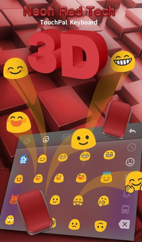 新的免費3D霓虹燈紅科技主題觸寶表情符號鍵盤。打字的樂趣!