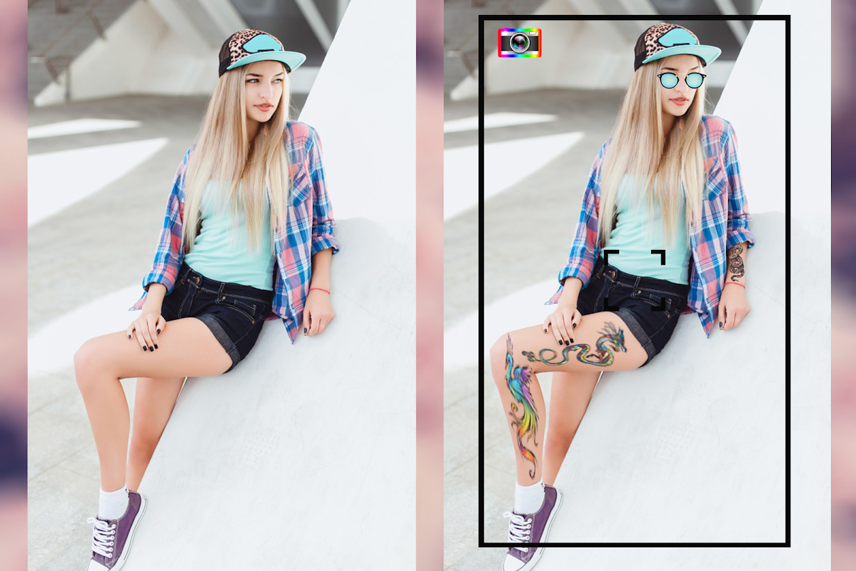- 缩放,放大,缩小,旋转,调整“3D纹身”或“贴纸”或“卡通脸”到您的图像;