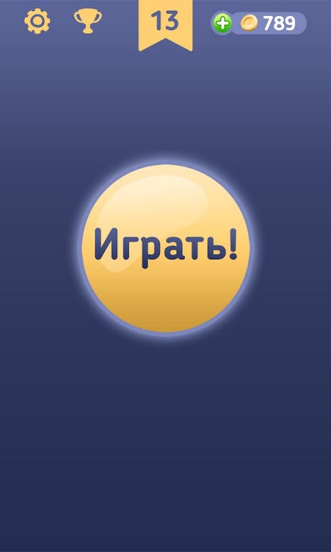 При запуске игры, напоминающей филворды, вы попадаете на основной экран, в середине которого расположена большая желтая кнопка с надписью “играть!”. В верхней части экрана находятся следующие значки: