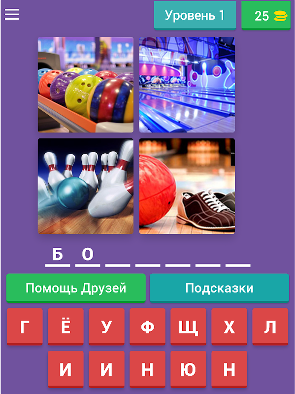 Вариация на один из самых популярных видов игр на сегодняшний день! Интересная и затягивающая игра на логику, которая не оставляет равнодушных детей и взрослых. Тысячи людей находят "4 картинки 1 слово" захватывающей для себя. Правила игры очень просты! Четыре картинки на экране объединяет одно загаданное слово. Вам придется воспользоваться своей логикой, чтобы разгадать его. Это могут быть предметы, животные, профессии, виды спорта, игры, еда, развлечения и многое другое. Получайте денежные призы за пройденные уровни! А если не справляетесь, попросите подсказку или помощь друга. Эта игра поможет вам весело провести время и развить свою логику!