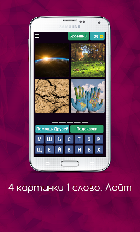 屏幕顯示4張圖片。它們之間有一些共同點。猜猜這個單詞。哪個團結了他們?首先通過簡單的級別,然後會更困難。