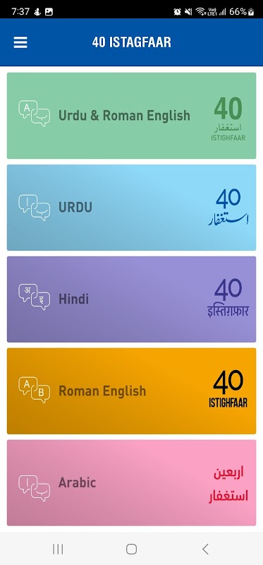 40 ISTAGFAAR 應用程序,提供 5 種不同語言的翻譯。