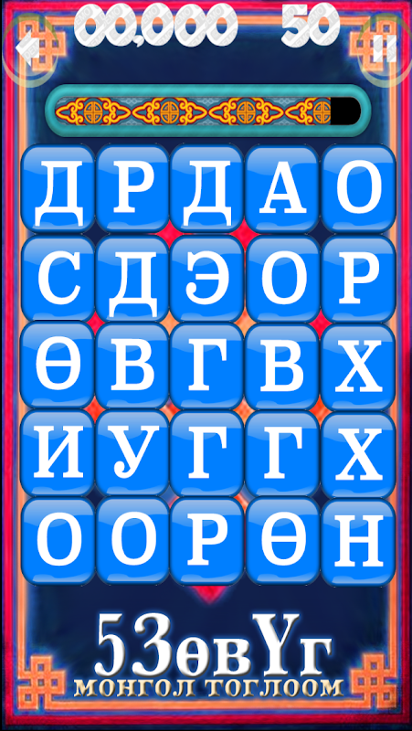 亂七八糟的字母,單詞拼圖蒙古語手機遊戲,由Asuult.NET 2014.Khundaga Khurelbaatar。