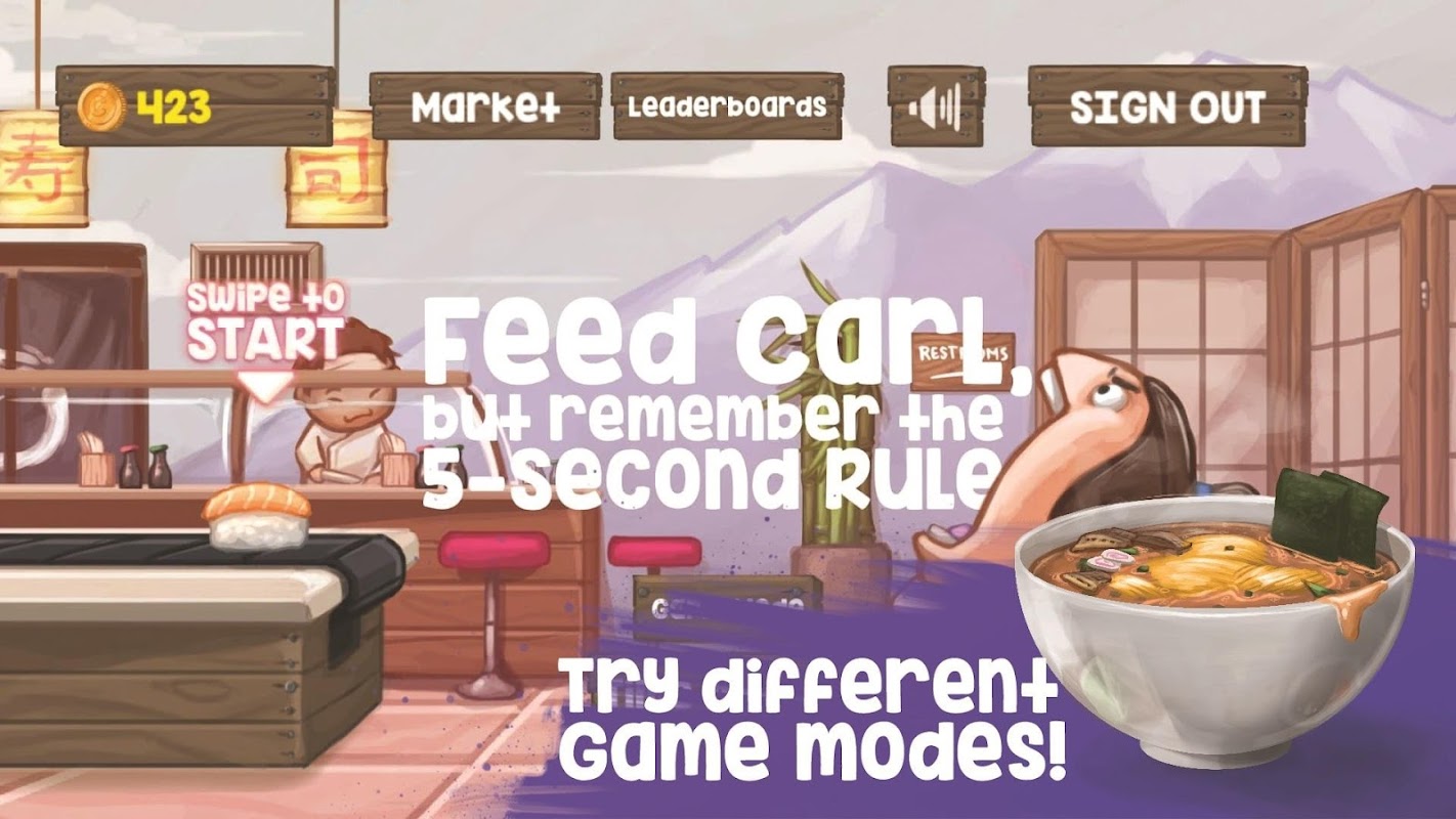 Carl just finished his sumo wrestling training and he's REALLY hungry! Feed him delicious food, but be aware of the 5-second rule! Act fast! Food left on the floor for 5 seconds will go bad and Carl won't be happy with that! Keep your #1 customer happy!