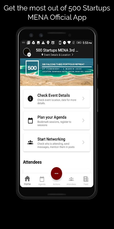 An app for 500 Startups events in the MENA region, including Investor days and other programs