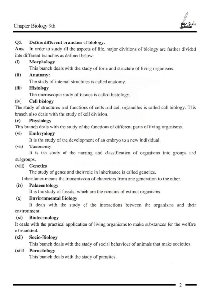 9th class biology notes pdf