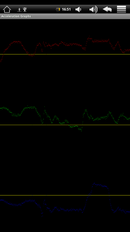 Now added new possibilities: program may show maximal and minimal acceleration of device and vertical level demonstration using picture. Version 1.2: write data possibility added. Press yellow square for acceleration recording. Square will stay red. For finish recording press red square.
