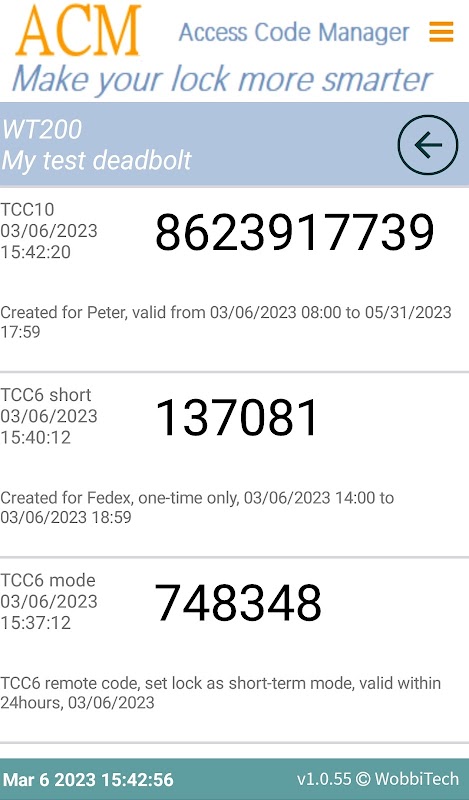 Access Code Manager(ACM)是一款為支持ACM的電子鎖提供密碼管理功能的手機App,與ACM App配合使用,可以將一些密碼訪問的電鎖升級為具有更多現代智能手機APP功能的智能鎖。