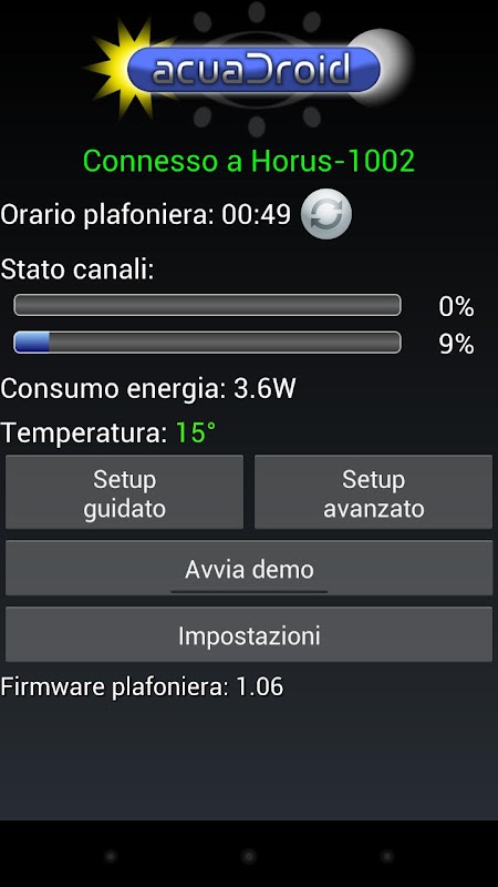 AcuaDroid是一個軟件的LED天花板燈的管理,HORUS一系列Bizeta