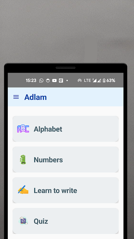 應用程序學習fulani字母(Adlam) 𞤢𞤣𞤤𞤢𞤥