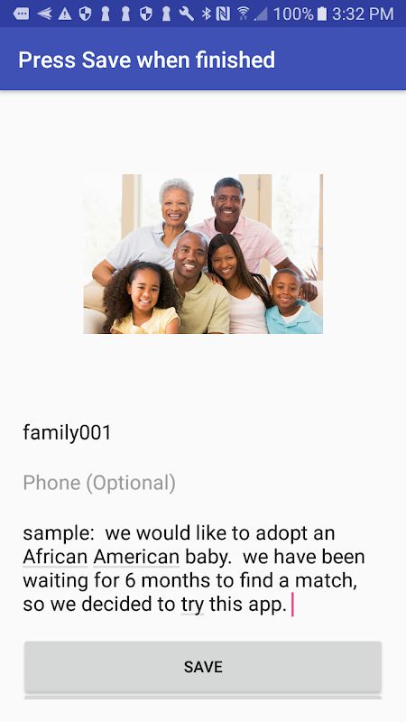 Newly signed-on adoptive families (not referred by agencies or attorneys) will go through a screening consultation by an adoption service provider or provide their homestudy documents before they can match with birth mothers in the app. After the adoptive family has found a matching birth mother, they can complete the rest of the process with an adoption lawyer, or adoption agency. The adoptive family will need to pay a consultation fee to the adoption service provider. At launch, this app will work only for adoptive families in California.
