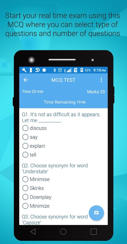 多項選擇題:這就像參加一場即時考試。每題的分數相同。您可以選擇題目數量和題型。您可以從種類繁多的問題中選擇(含義、同義詞、反義詞、語法和混合)。時間和分數都感覺非常真實,您可以透過這部分選擇題來真正評判自己。