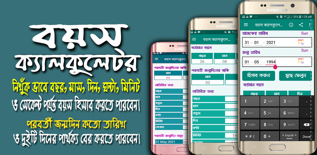 এই অ্যাপটি আপনার বয়স নির্ণয়ইদদদ বিভিন্ন প্রয়োজনীয় তথ্যসহদে বদ সহায়তা করবে। চাকরি、শিক্ষা、আবেদনপত্রবাবযকধদি প্রয়োজনে বয়স জানা এখন মাত্র এধ দ