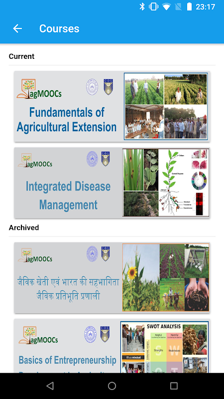This app lets you access all the courses offered on agMOOCs. All the course content like videos, announcements, resources can be consumed. You can take quizzes and submit assignments. You will be able to participate in Forums and Hangouts. You will receive notifications when new lectures, quizzes and assignments are released. You can also access the courses when offline.