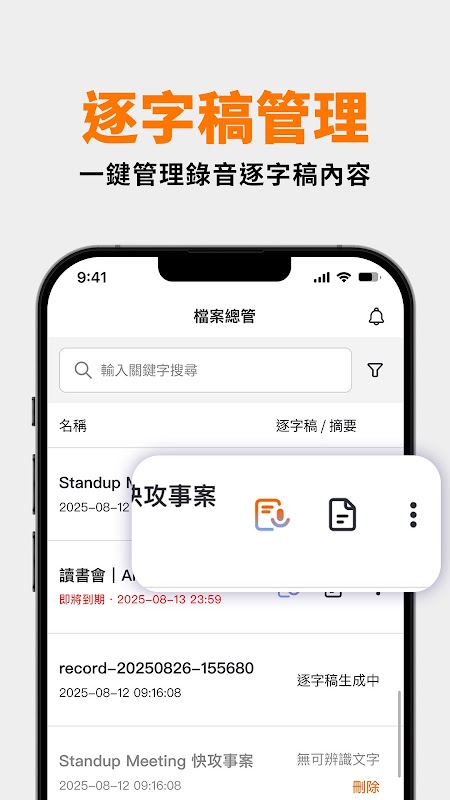錄音轉寫:上傳音檔快速生成完整逐字稿,事後整理超輕鬆