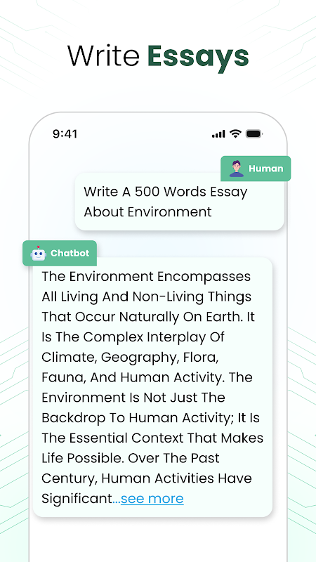 有問題嗎?免費離線向 AI 聊天機器人助理詢問任何問題!聊天人工智慧應用程式將為您提供有關任何主題的即時、準確的資訊。參與有助於人工智慧的家庭作業和有意義的對話,同時透過人工智慧聊天機器人應用程式探索無限的創造性可能性。