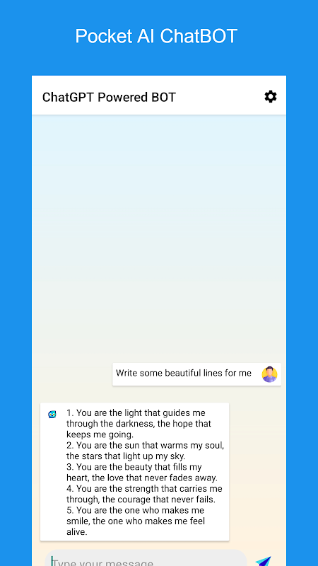 ChatGPT Powered AI ChatBot 是一種應用程序,它使用先進的人工智能技術與用戶交互並提供有用的響應。這個聊天機器人旨在理解自然語言,可以回答問題、提供建議,甚至可以進行隨意的對話。憑藉其直觀的界面和先進的功能,用戶可以快速輕鬆地從 ChatGPT AI ChatBot 獲取所需信息。非常有用的應用程序,特別適合學生。