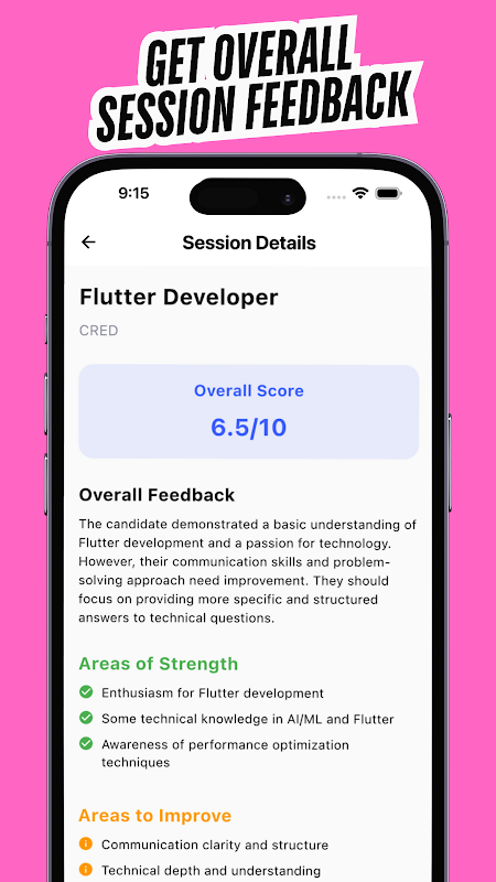 📊 智慧面試回饋 – 獲得即時的人工智慧驅動的績效分析,包括優勢、劣勢和改進建議。