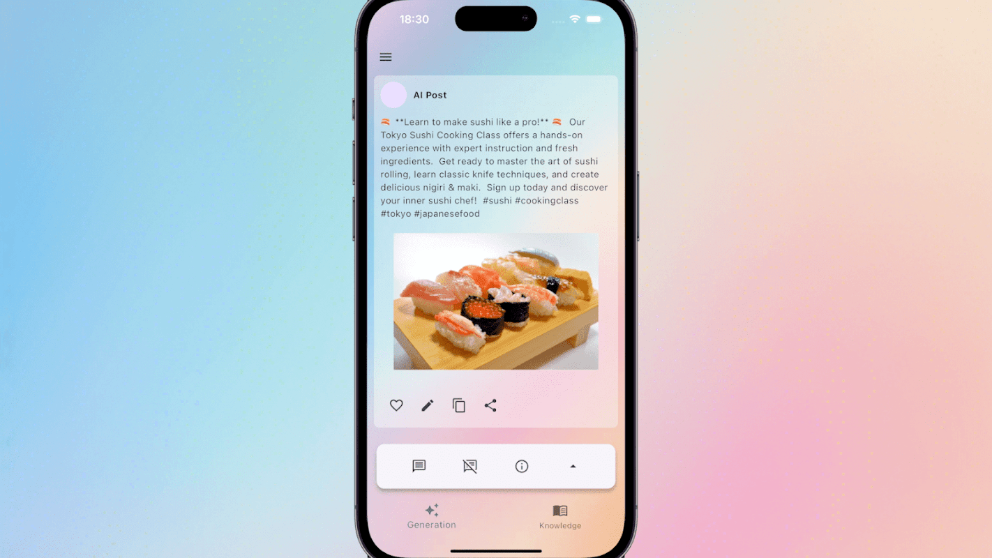 1. 通过添加.txt、.pdf和图片作为知识,专门针对用户的产品或服务生成帖子