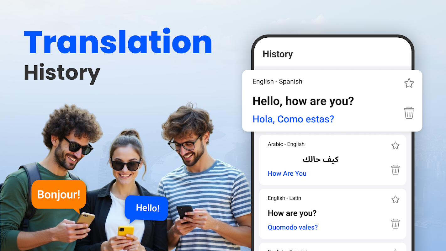 使用 AI 相機翻譯器,讓您體驗零語言障礙的世界。立即說出來並翻譯:AI 翻譯器讓您隨時隨地獲得即時翻譯!有了我們的 AI 語言翻譯器,您再也不用擔心在其他國家/地區聽不懂某個短語了。讓 AI 翻譯:會說話的翻譯器可幫助您重新定義隨時隨地與世界各地的人建立聯繫、理解和溝通的方式。