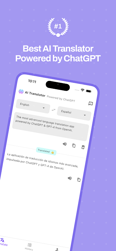 最先進的語言翻譯應用程序,由 OpenAI 的 ChatGPT 和 GPT-4 提供支持。利用人工智能的力量無縫連接全球的人、內容和文化。