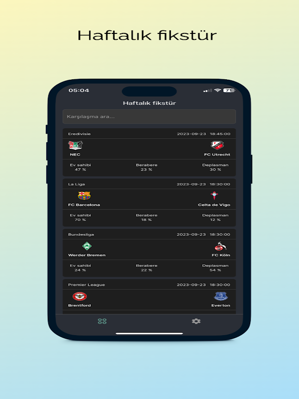 在人工智慧的支持下,它會分析足球比賽的可能結果並返回百分比結果,並顯示透過人工智慧分析的每週比賽的預測。