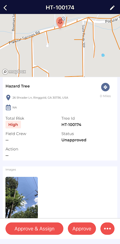 AiDASH IVMS 現場應用程式使工作人員能夠記錄和執行植被風險工作。