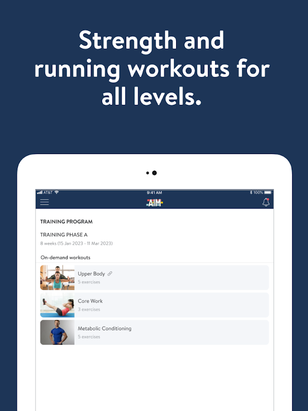 AIM 應用程序旨在幫助您實現跑步、健身和生活目標。每個 AIM 計劃都提供最適合您獨特需求和目標的各種功能 - 因此,無論您處於哪個季節,您都可以實現更多目標。