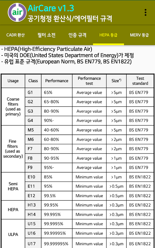 4)HEPA 등급표