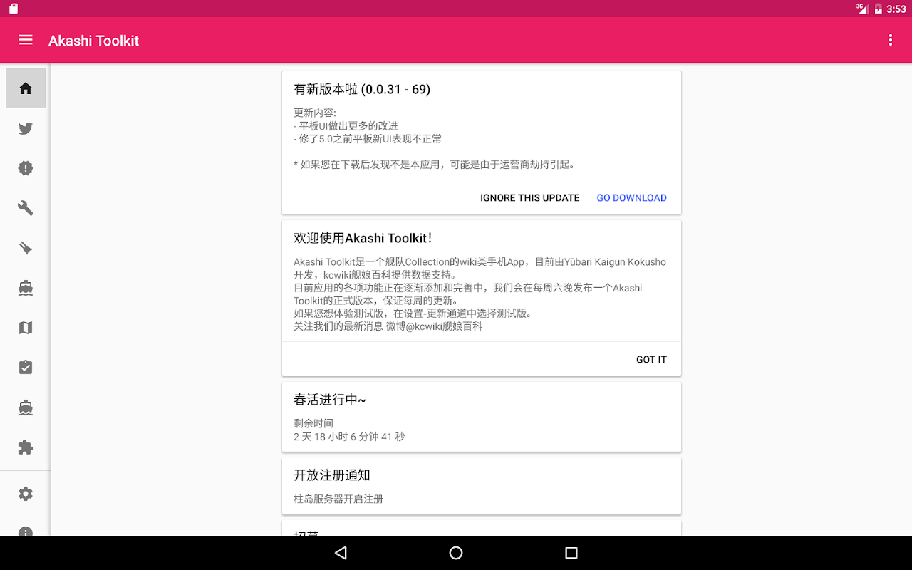 现在支持查看官推及翻译、改修、装备、任务、远征、舰娘数据、带路数据的查看。