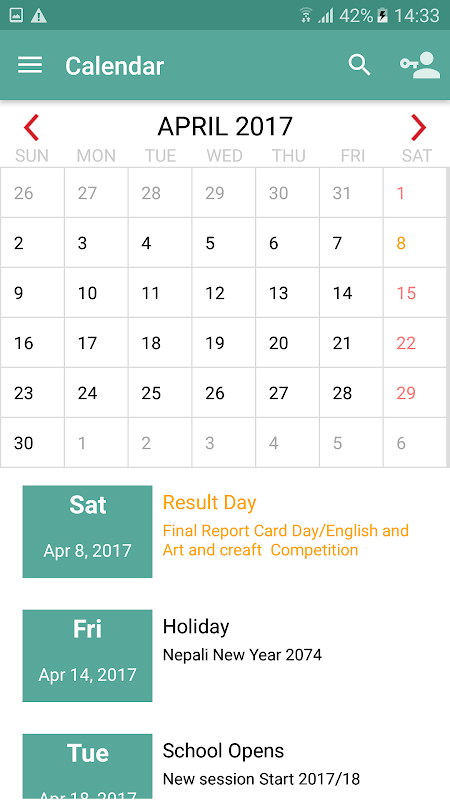 家長現在可以查看約通過應用程序自己的孩子在學校維護的信息。這些信息包括:類/考試程序,校歷,作業,考勤記錄,進度報告,賬單,收據等,他們也可以發送郵件到學校,以及從學校領到了定期溝通。