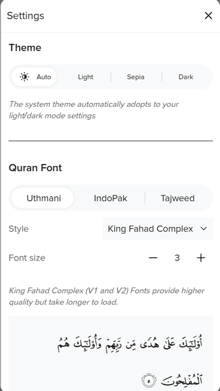 完整的音頻《古蘭經》可以滿足屏幕逐章、逐節的背誦。”