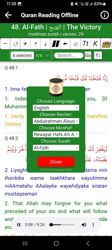 5. Quran Tafseer in English, Bengali, Hindi, Arabic and soon.