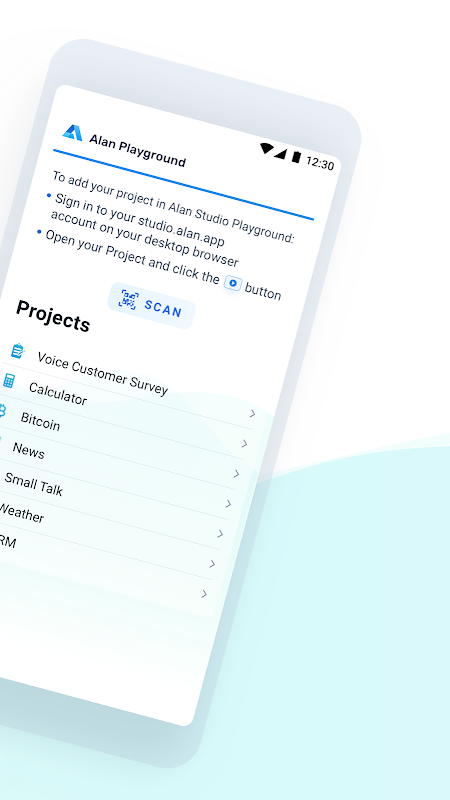 透過使用 Alan Playground 配套應用程式對語音命令進行原型設計,將您的 Alan Studio 專案變為現實。該應用程式可讓您使用本機手勢和內建麥克風與您的專案互動。