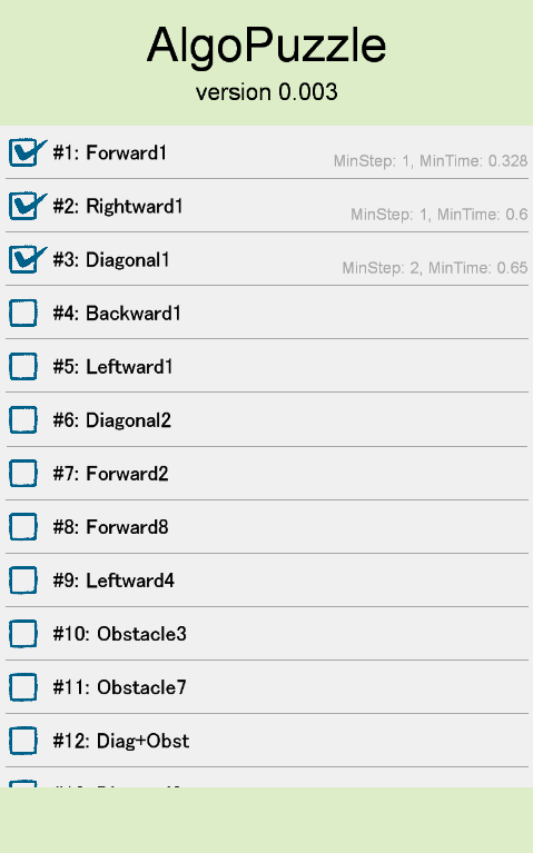 AlgoPuzzle はビジュアルプログラミング(Visual Programing)の学習ができるパズルアプリです。