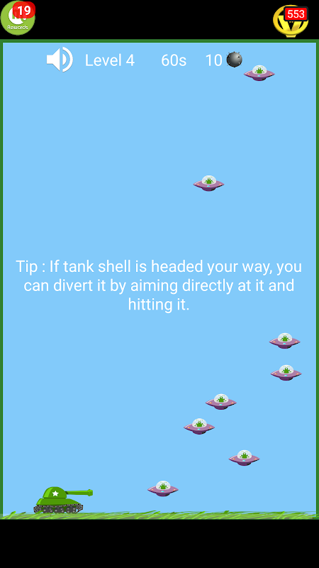The skies of planet earth are dark with the alien spaceships hovering over and their intentions don't look benign. All of earth's defenses have been overrun. You are the ONLY hero left and the LAST defense. The good news is that all the other heroes did massive damage to the aliens and there are only a limited number of alien spaceships left. Your goal is to eliminate all the remaining spaceships and bring glorious victory to planet Earth !