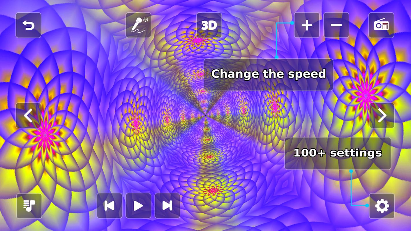使用任何音訊播放器應用程式播放音樂。然後切換到這個應用程式。然後它會將音樂視覺化。包括許多廣播頻道。還包括一個音樂檔案播放器。