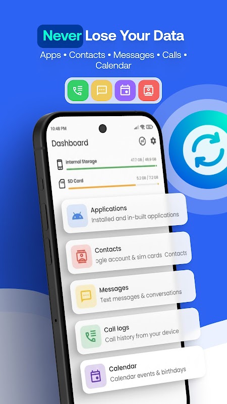 ⬇️ 立即下載,使用值得信賴的免費備份和恢復功能,保護您的手機資料安全。輕鬆設定備份,選擇本地備份、SD 卡備份或雲端備份和恢復,隨時恢復聯絡人、簡訊、通話記錄和行事曆。