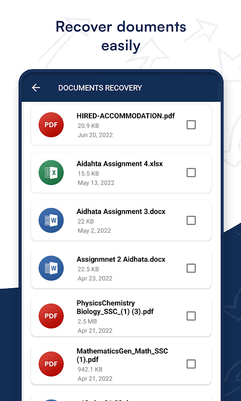 所以只需下載所有數據恢復 - 恢復已刪除的文件 - 文件恢復現在可以免費恢復所有數據恢復和恢復已刪除的文件。此文件恢復會自動掃描並向用戶顯示所有已刪除的文件,並允許他們立即將視頻、音頻、文檔、照片和文件恢復到他們的智能手機中。