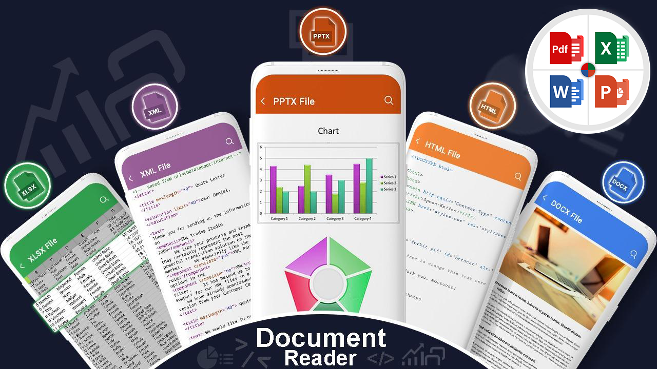 所有文檔閱讀器:文檔查看器一個閱讀器應用程序,它可以讓您閱讀幾乎所有手機上可用的文檔文件。這個應用程序作為PDF閱讀器,docx查看器,xls查看器和ppt查看器所有這些尺寸小於其他可用的應用程序。無論是odt文件,ott文件,html,mhtml還是xml文件,它都是一個文檔閱讀器。所有文檔閱讀器:文檔查看器使您可以自由地以10種以上的文檔文件格式在線和離線查看和閱讀文檔。它作為PDF閱讀器,pdf查看器,docx閱讀器,doc閱讀器,ppt查看器,pptx查看器,txt,rtf,html和mhtml查看器,xps閱讀器,odt閱讀器,電子書閱讀器,ppt和許多其他文檔查看器的doc格式。所有文件閱讀器:文件查看器可以在辦公室使用,如果你是一個商人,有太多的文件可以通過或簽署,如果你是一名學生在學校,並在你的手機上獲得你的老師ppt / pptx,doc / docx文件如果你是一名家庭主婦,你可以在晚些時候或在白天學習書籍。