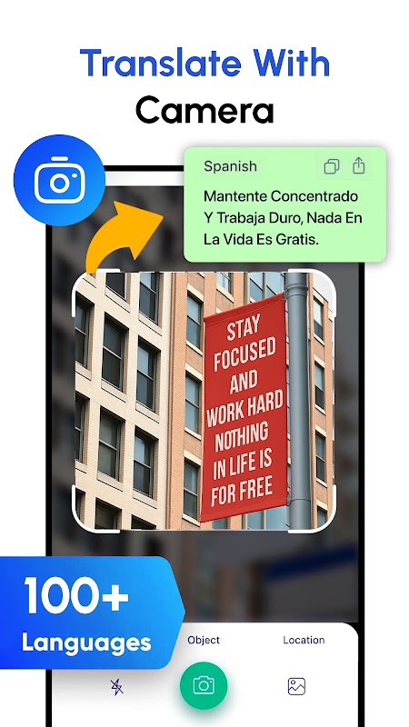 Speak naturally and let the Voice Translator do the work with the Voice-to-Text Translation feature. This hands-free tool converts your speech into translated text instantly, making it ideal for conversations, quick notes, or content creation. Communicate confidently, even on the go with Camera Translator App.