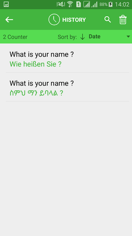- 歷史頁記住你所有的以前的翻譯。您可以選擇您已經翻譯在過去的單詞或句子,看看它的結果