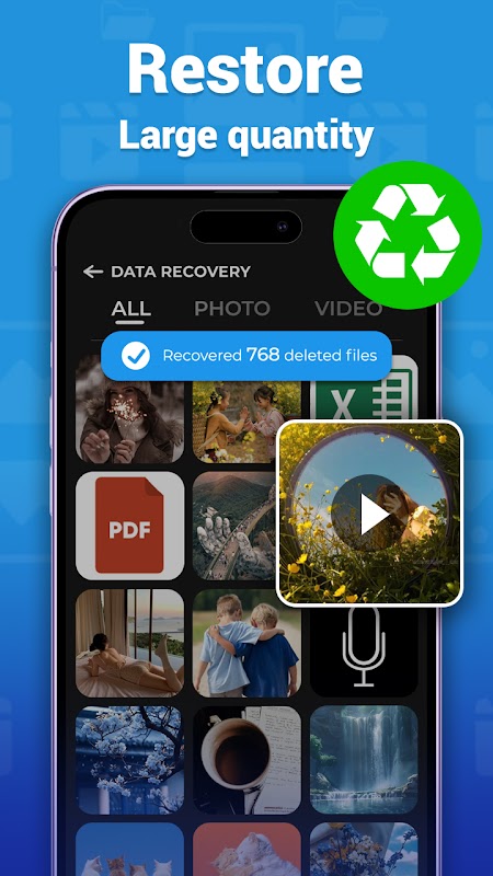 APKPure 使用簽章驗證功能,確保為您提供無病毒的 All Photo Video File Recovery APK 下載。