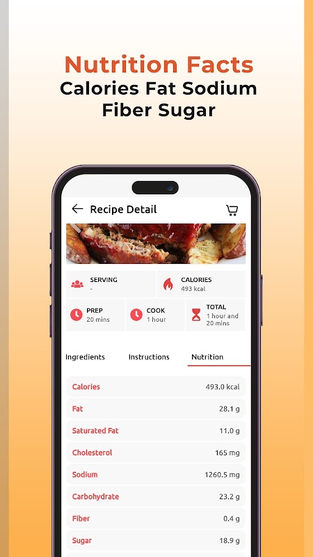 ✅ 食材和營養資訊-查看每個食譜的卡路里、脂肪、蛋白質等資訊。